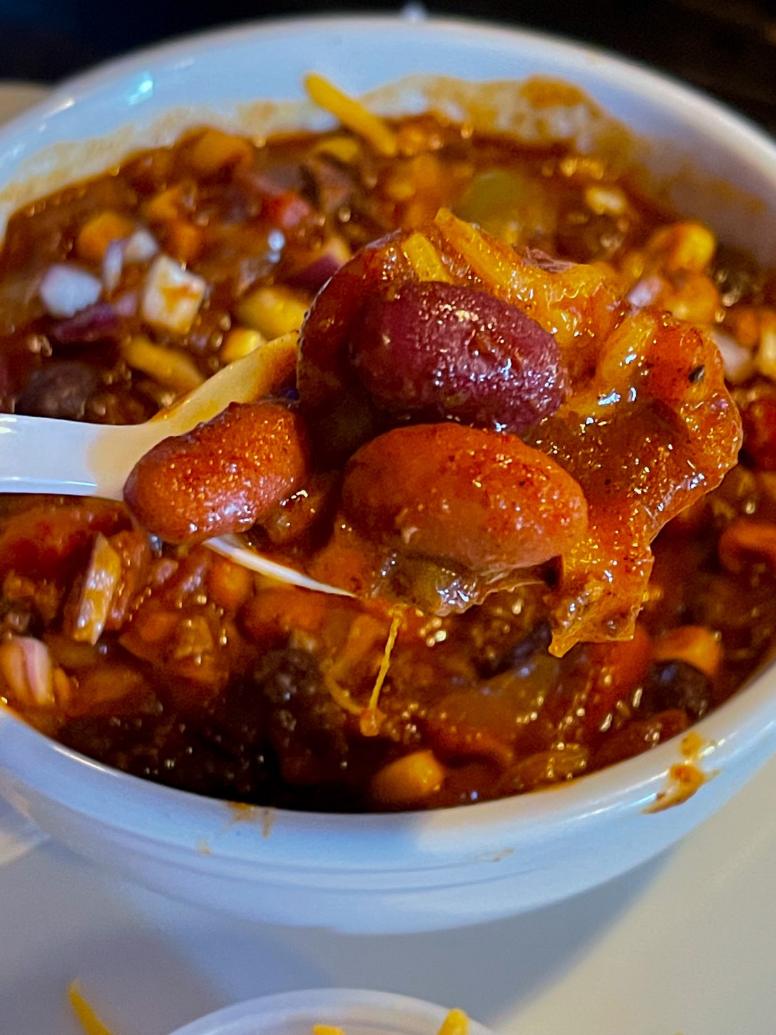 In a cloud of chicken deprivation and expectations set low, we were pleasantly stunned at how good the food was at George’s Corner Tavern. I mean, really good. The chili was homemade fresh that day with multiple different beans, lots of vegetables and perfect seasoning. I would come back just to eat that chili again. And put it on everything on the menu! Just think…chili burger, chili dog, chili fries…but I digress.